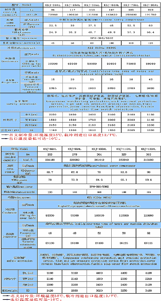 低溫風(fēng)冷式冷水機(jī)參數(shù)