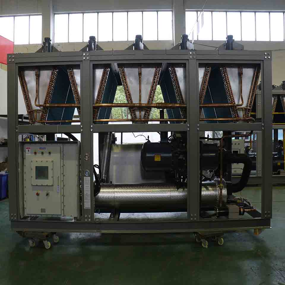 新材料生產(chǎn)用冷水機(jī)有些工藝要求防爆,防腐,變頻等這些在選型時要告訴生產(chǎn)廠家。