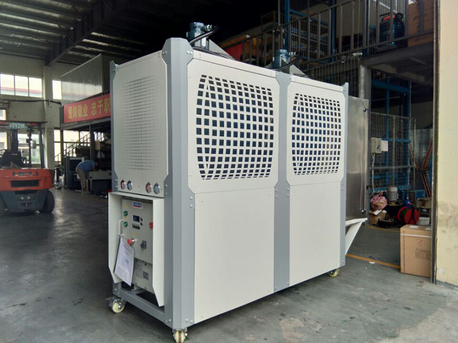 1、風(fēng)冷式化工行業(yè)控溫用防爆制冷機(jī)組,通過(guò)風(fēng)扇以空氣為冷凝方式的控溫設(shè)備,有箱式和螺桿式;